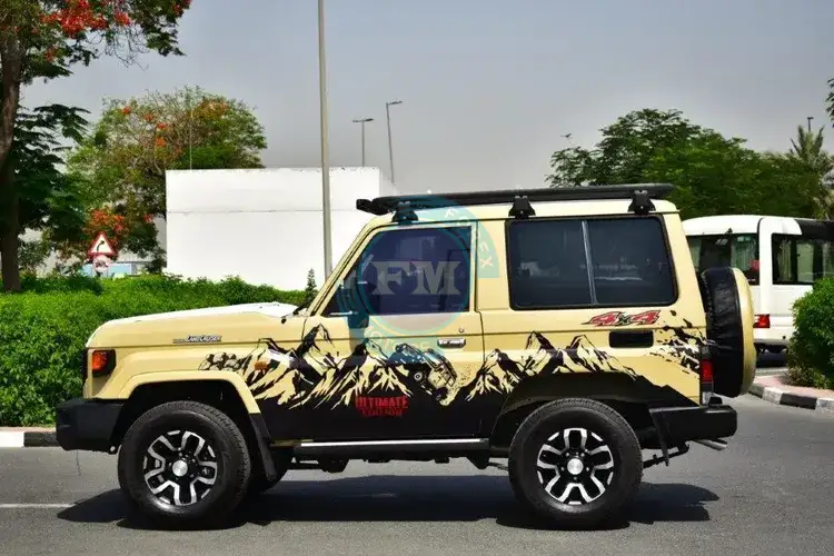 The 2024 Toyota Land Cruiser SWB 71 Ultimate Edition V6 4.0L 4WD 7 Seater with manual transmission is the epitome of rugged luxury and off-road performance. This limited edition Land Cruiser comes equipped with a range of exclusive features that set it apart. The power side steps automatically deploy for easy access, while the heavy-duty roof rack provides ample storage space for adventure gear. The Warn winch, with a 1000 lbs capacity and wireless remote, ensures you’re always prepared for off-road challenges. The suspension lift kit with EFS shock absorbers enhances the vehicle’s capability over rough terrains. The leather seats and carbon interior accents elevate the interior comfort and style. The Rigid Revolve LED light bar with a white trim ring offers exceptional visibility in any situation. The utility tray adds practicality for storing small items, and the window tinting provides privacy and sun protection. The Land Cruiser Ultimate Edition is equipped with a rear camera and front monitor for enhanced safety and convenience. The spare tire cover and body stripe with Ultimate Edition branding add a distinctive touch to the exterior. With its combination of luxury, off-road prowess, and exclusive features.