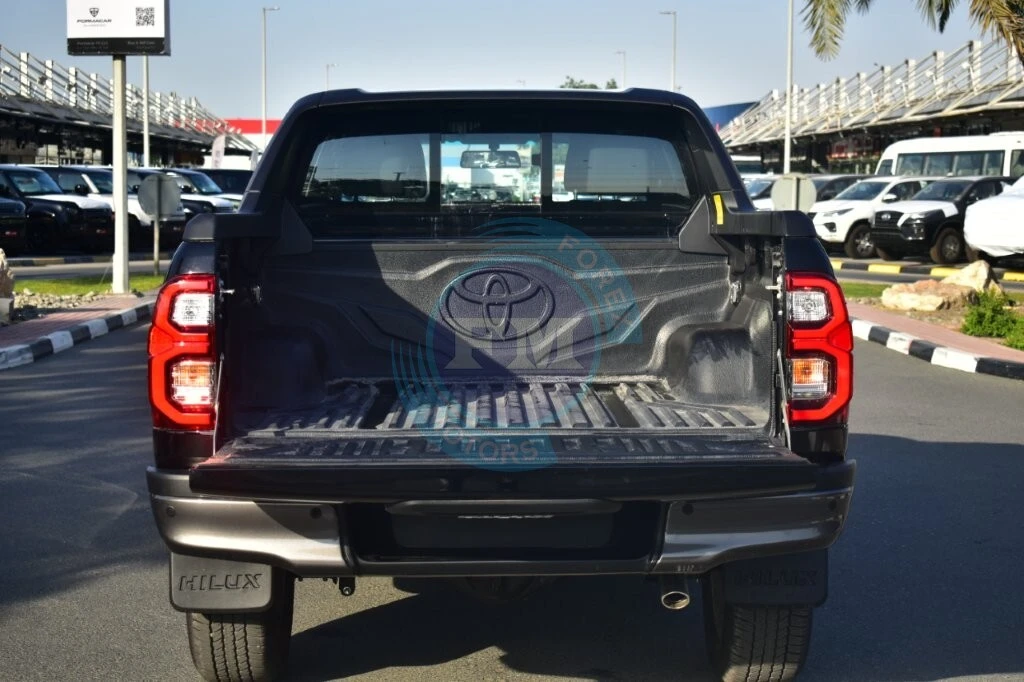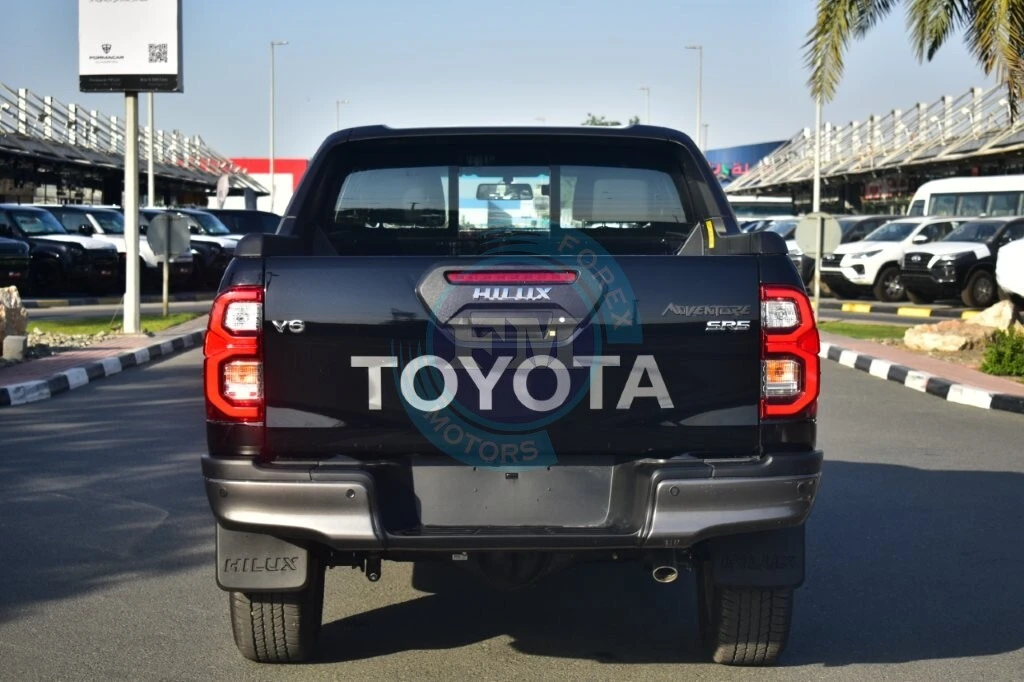 Finally, the Hilux Adventure petrol look turns heads. You gain a metallic black grille, adventure dome badge, LED high mount stop lamp, and adventure side stripes. You also get front skid plate, fog lamps, side steps, and a bedliner. With tailgate and hood lift assist, this Hilux handles daily work with ease.