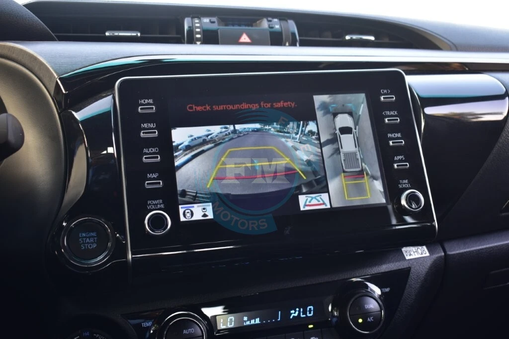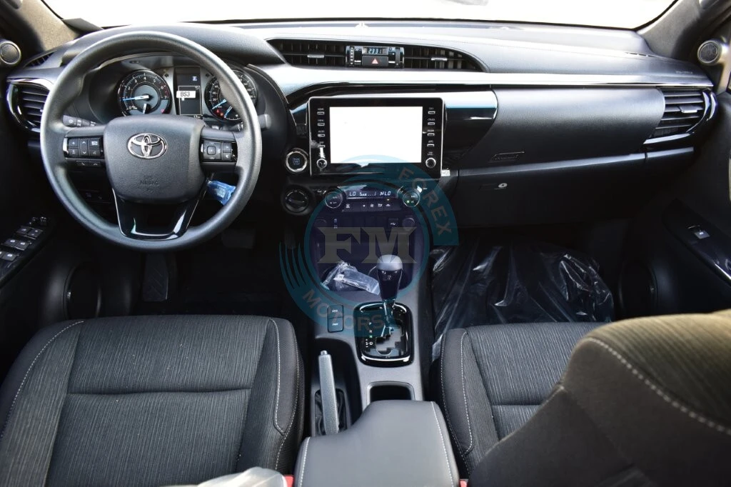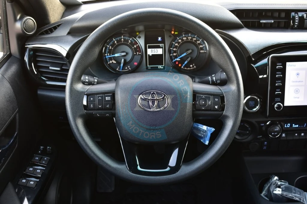 You also get rugged all-terrain readiness for every adventure. The Hilux rides on 265/60 R18 all-terrain tires, and it mounts on alloy wheels with an alloy spare tire. Furthermore, the suspension uses a front double wishbone setup and a rear leaf spring system. That combination improves control over rough surfaces. Additionally, the wheelbase and stance support stable body movement, and you enjoy a confident ride quality.
