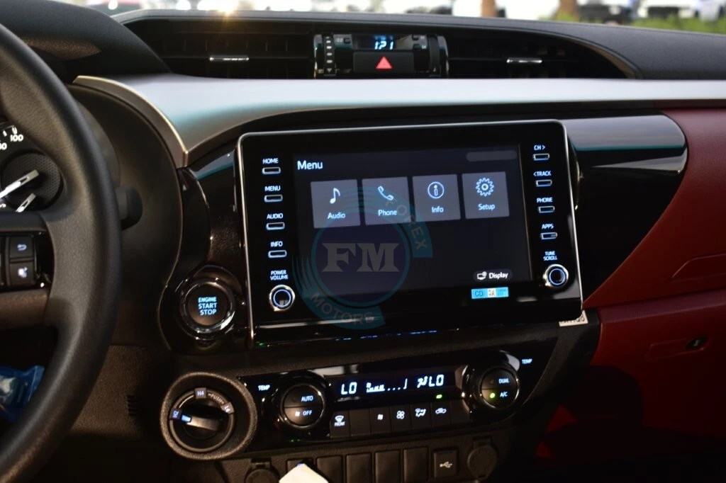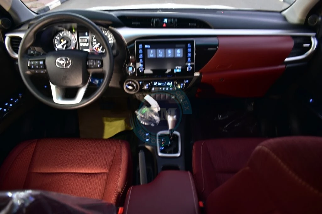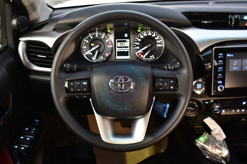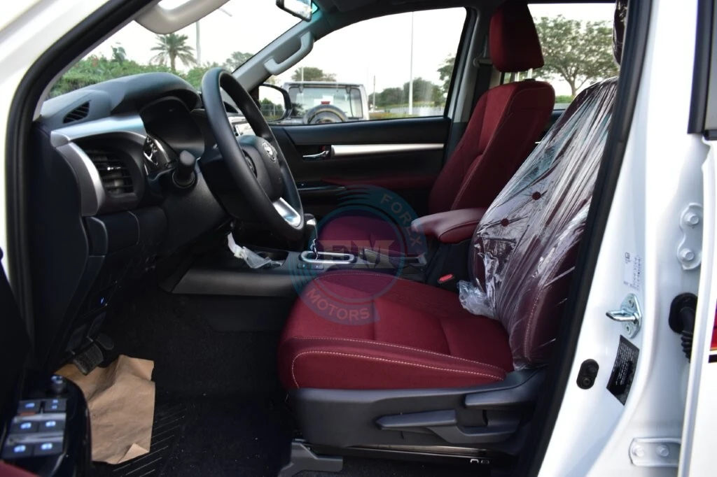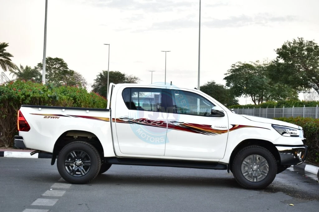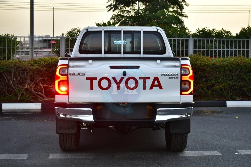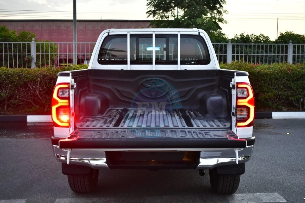 Chrome accents on the grille and exterior trim add a thoroughly refined and cohesive elegance throughout always. Moreover, body-colored bumpers integrate seamlessly into the Hilux’s clean and thoroughly cohesive exterior design consistently. Furthermore, a sports bar adds both a purposeful visual element and practical protection to the cargo bed area.