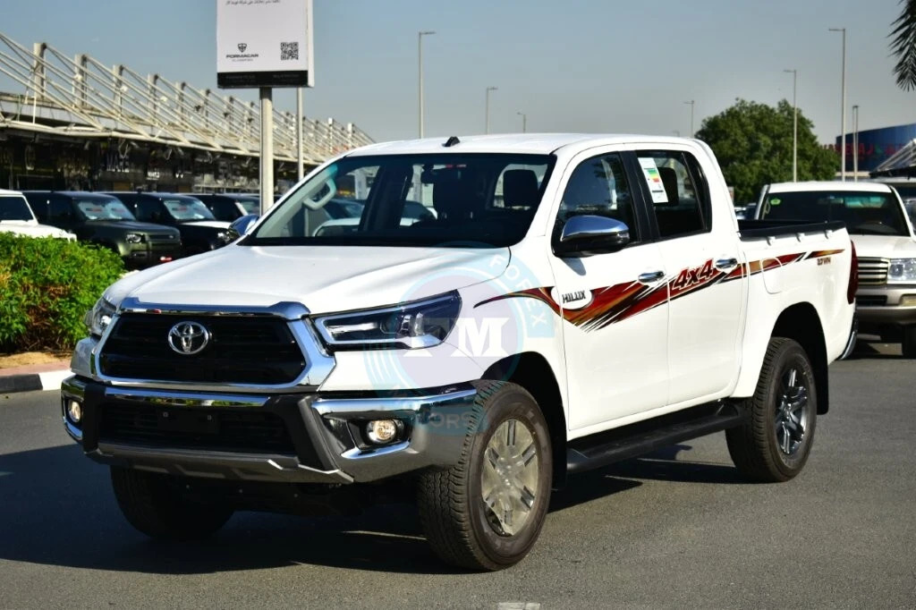 The 2026 Toyota Hilux Double Cab Pickup GLXS-G is a robust and versatile vehicle designed for both work and leisure, with a smooth 4WD automatic transmission, ensuring excellent performance on various terrains. Its interior is equipped with modern conveniences, including an advanced 8-inch display audio system with USB and Bluetooth connectivity, complemented by four speakers for an enjoyable driving experience. The vehicle offers enhanced comfort with automatic air conditioning and rear duct cooling, along with a cool glove box and a well-designed interior featuring power door locks and windows. Safety is prioritized with features like a back view camera, anti-theft immobiliser, and a comprehensive safety kit. The exterior is stylish and functional, showcasing LED headlamps with auto levelling, front fog lamps. Additional highlights include keyless entry, a multi-info display with TFT type, and a tire pressure monitoring system, making the Hilux GLXS-G a reliable choice for both daily commuting and off-road adventures. The vehicle also boasts practical enhancements like a tailgate lift assist, hood lift assist, and a shift lever knob wrapped in leather with silver accents, ensuring a sophisticated yet rugged appeal.