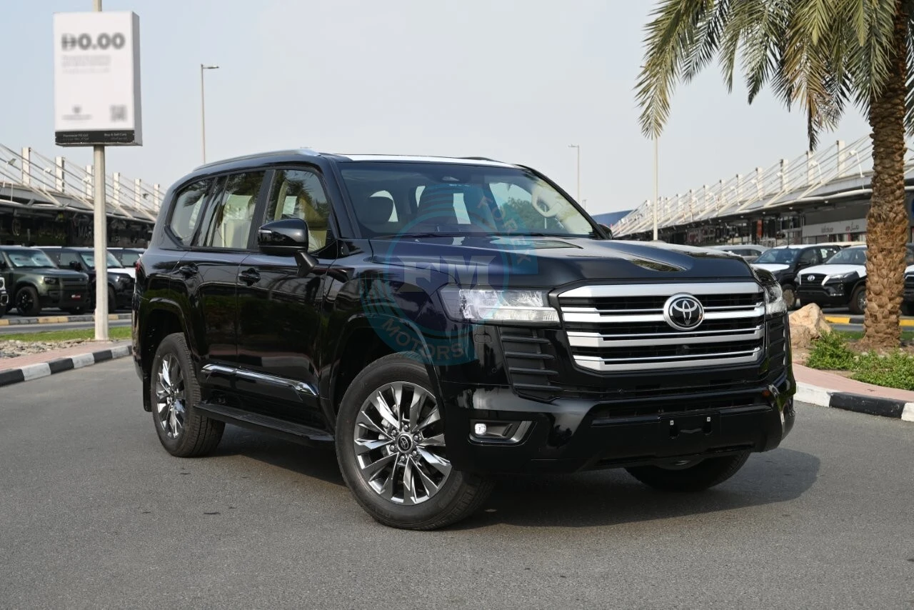 The Land Cruiser GXR V2 presents a commanding and sophisticated exterior design of outstanding premium visual appeal. Furthermore, full LED headlamps with LED daytime running lights deliver exceptional visibility across all lighting conditions. Additionally, sequential turn signals add a modern and distinctive dynamic detail to the refined front and rear fascia.