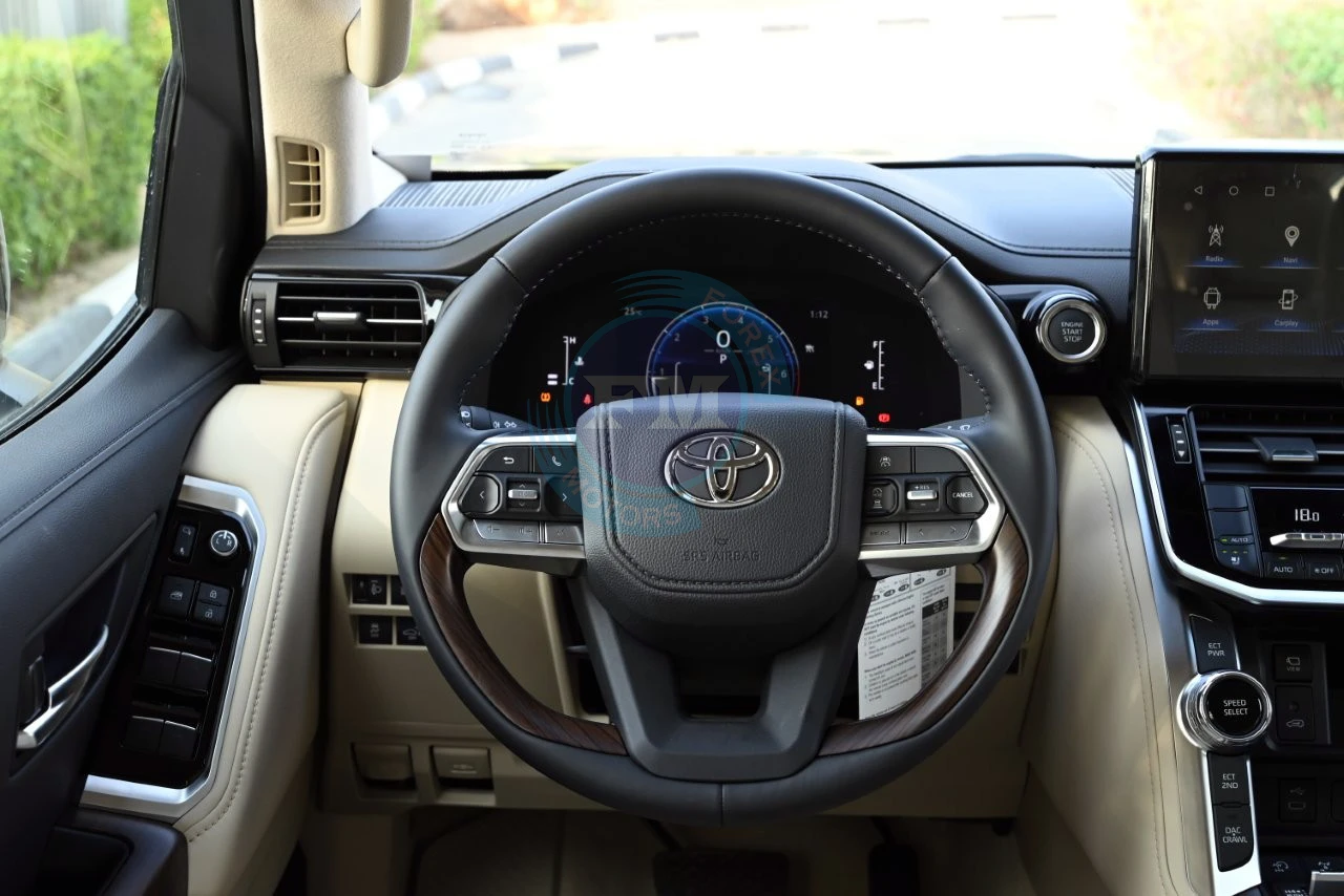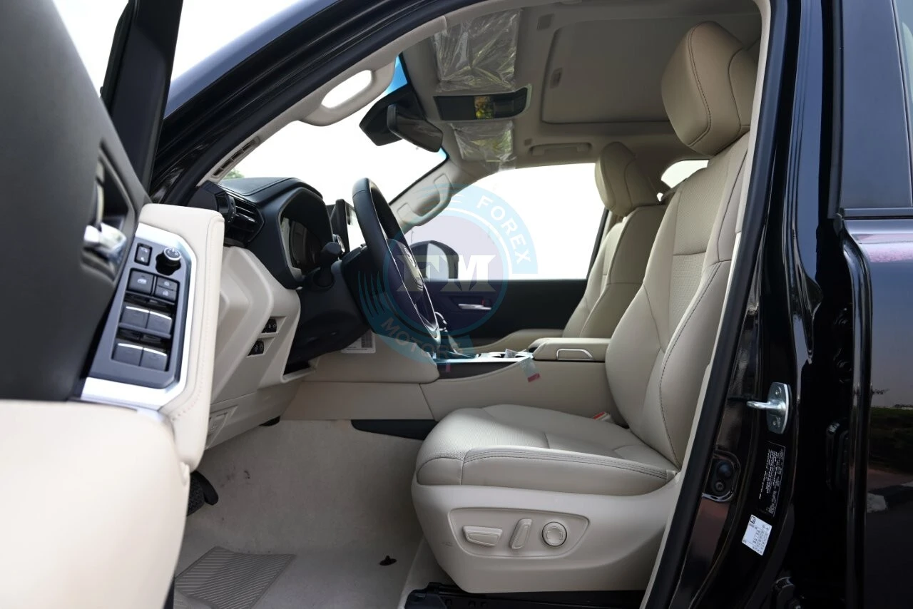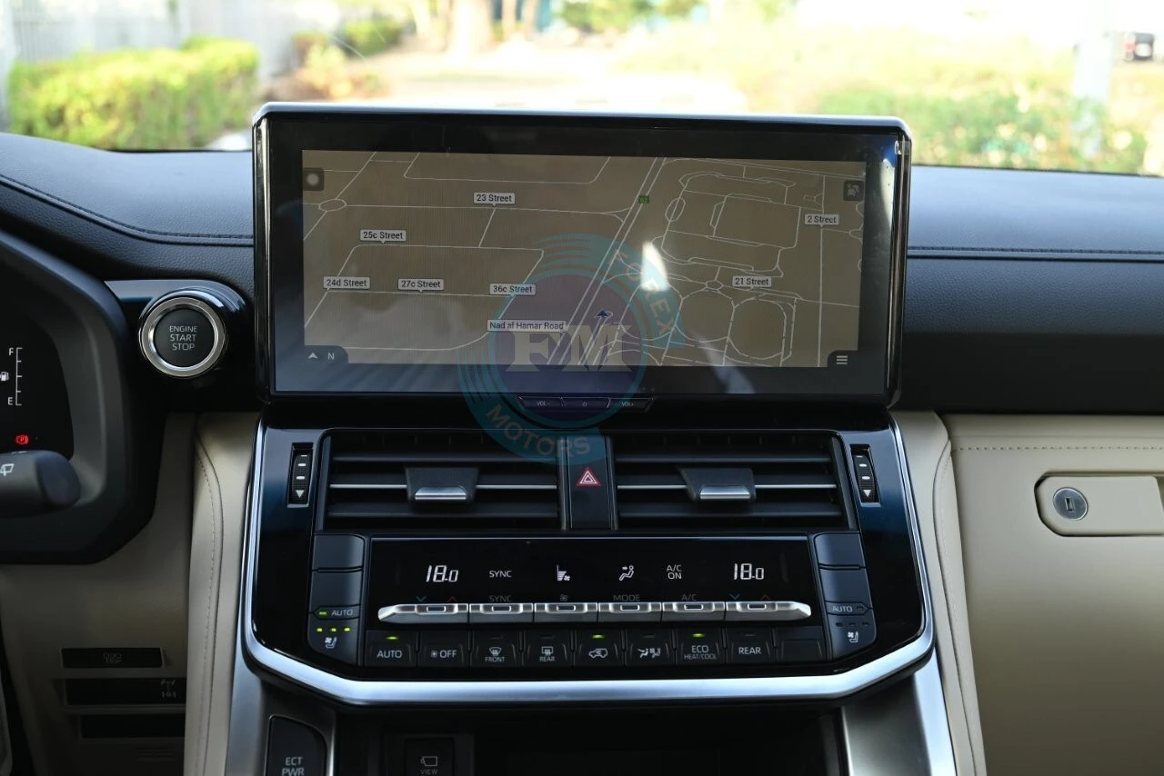 Inside, the Land Cruiser GXR V2 welcomes seven passengers with a thoroughly well-appointed and comfortable cabin environment. Furthermore, premium leather upholstery throughout the cabin creates a genuinely luxurious and thoroughly comfortable atmosphere always. Additionally, heated front seats ensure perfect comfort during colder weather conditions and temperatures consistently.