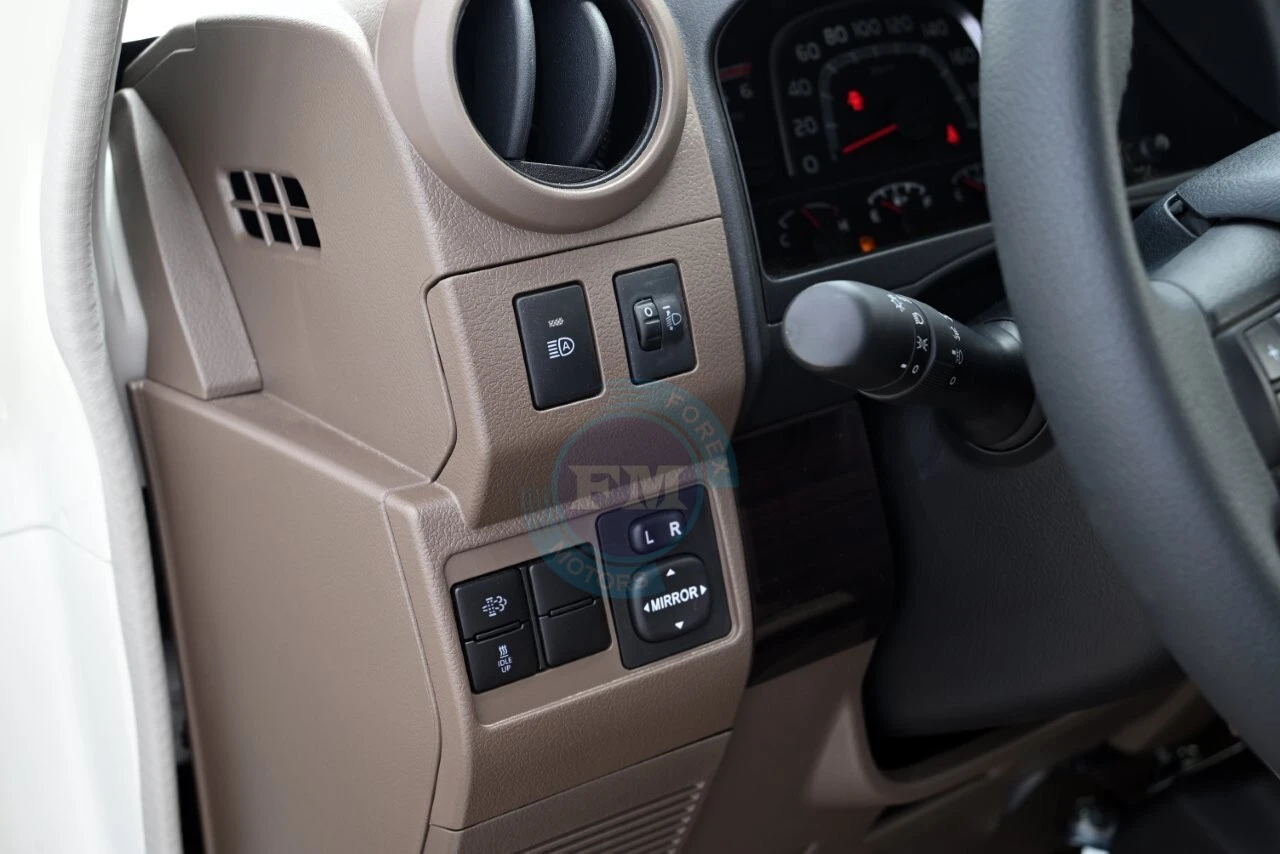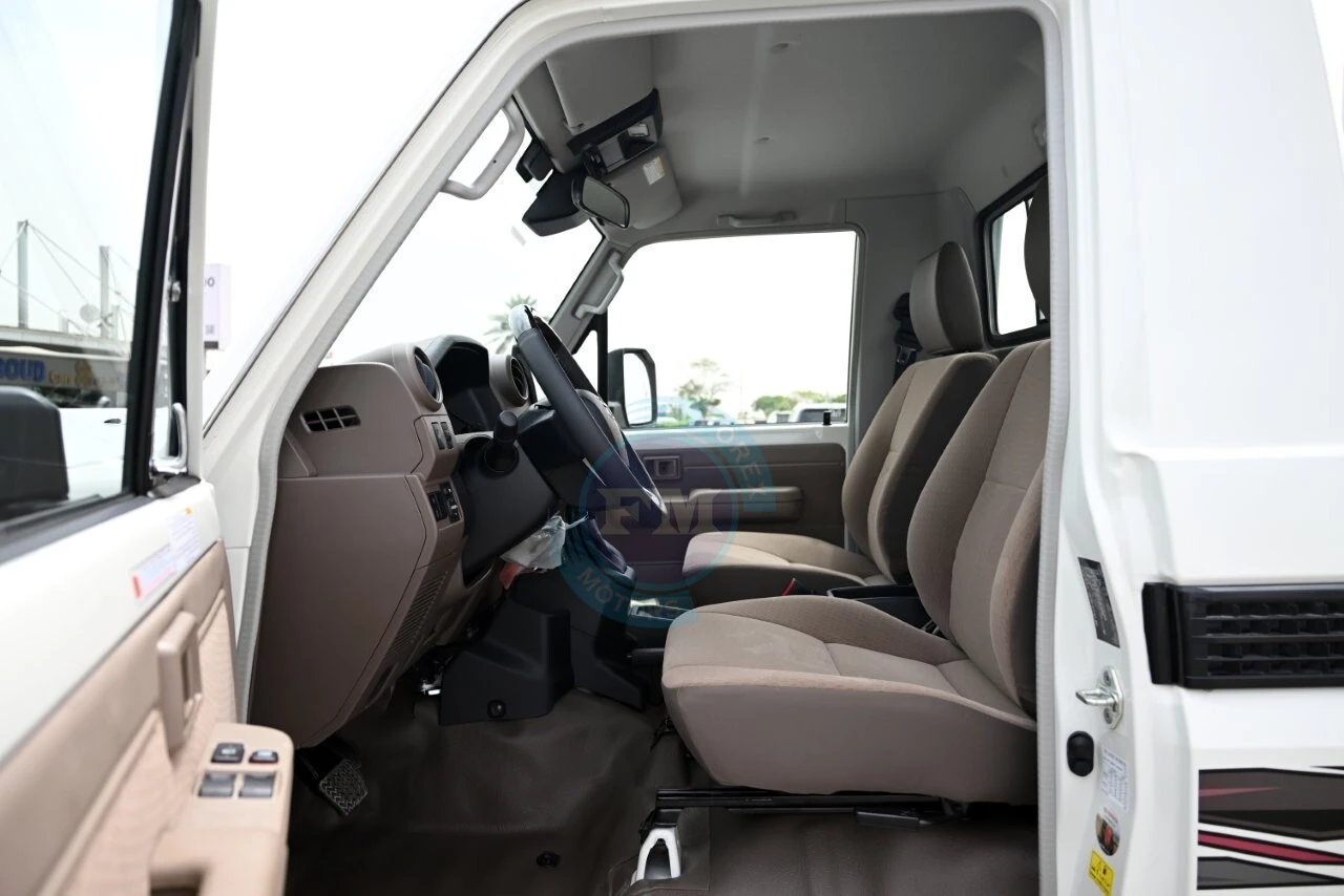 Inside, the Land Cruiser Pickup DLX prioritizes practical functionality and long-term durability above all else consistently. Furthermore, vinyl seat upholstery ensures easy cleaning and outstanding resistance to the wear of demanding daily use. Additionally, manual air conditioning maintains a comfortable cabin temperature during long and demanding operational days consistently.