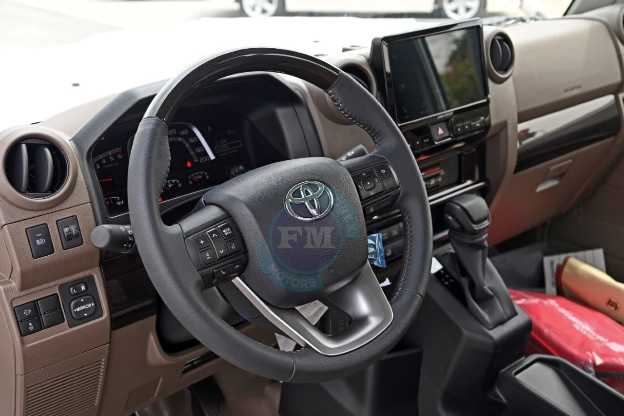 A generous 87-liter fuel tank supports extended journeys and remote operations without frequent refueling stops. Furthermore, this impressive capacity makes the Land Cruiser Pickup DLX ideal for long trips and demanding work operations. Additionally, drivers gain outstanding confidence and independence when venturing far beyond conventional refueling infrastructure consistently.