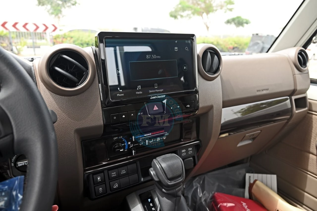 A basic audio system with AM/FM radio and USB connectivity covers essential everyday entertainment requirements adequately. Moreover, this practical approach to the interior reflects the Land Cruiser Pickup’s uncompromising commercial focus throughout. Furthermore, every interior detail prioritizes durability, functionality, and ease of maintenance above all other considerations always.
