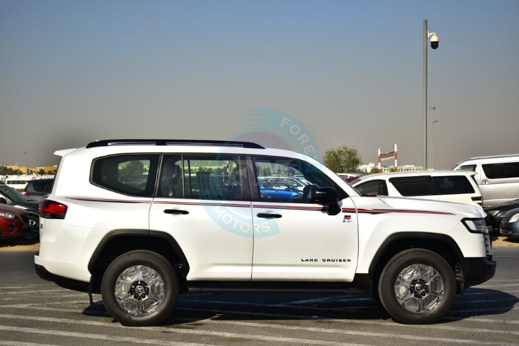 At 5,115 mm in length, the Land Cruiser 300 GR Sport commands a truly formidable road presence. Moreover, a width of 1,990 mm and a height of 1,945 mm contribute to its spacious and imposing stature. Furthermore, these generous dimensions translate directly into a roomy, comfortable, and thoroughly practical seven-passenger cabin experience.