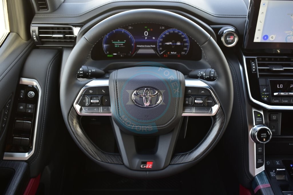 The LC300 GR Sport Hybrid draws power from the V35A-FTS 3.5L HEV V6 twin-turbo engine of outstanding capability. Furthermore, it delivers an impressive maximum output of 457 horsepower alongside a robust torque of 790 Nm. Additionally, this powertrain reflects Toyota’s commitment to blending exhilarating performance with intelligent hybrid efficiency seamlessly.
