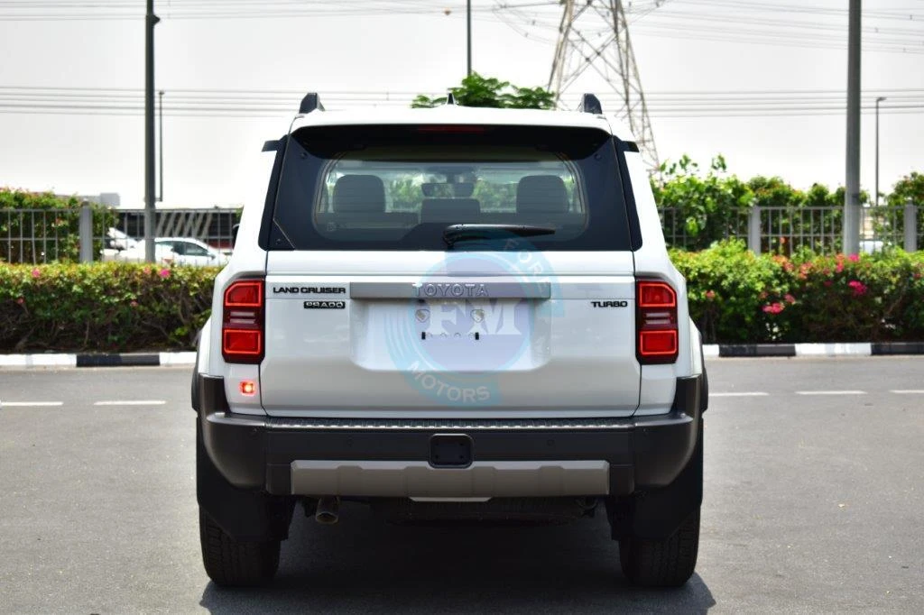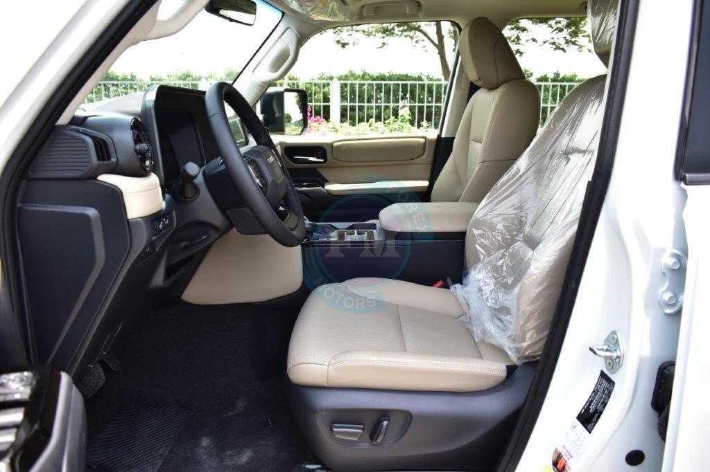 Chrome accents on the grille and exterior trim add a touch of refined elegance to the purposeful design. Moreover, roof rails add both practical utility and a purposeful visual element to the commanding exterior profile. Furthermore, body-colored bumpers integrate seamlessly into the Prado’s clean and thoroughly cohesive exterior design always.