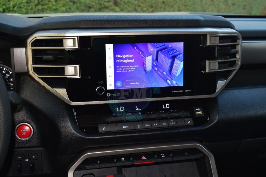 The 2022 Toyota Tundra 4×4 Double Cab SR5 TRD Off-Road V6 3.5L arrives as a bold and thoroughly capable pickup truck. Furthermore, a sophisticated 3.5L V6 twin-turbocharged petrol engine pairs seamlessly with a smooth automatic transmission for outstanding performance. Additionally, an advanced 4×4 system ensures confident handling across both urban roads and the most demanding off-road terrain.