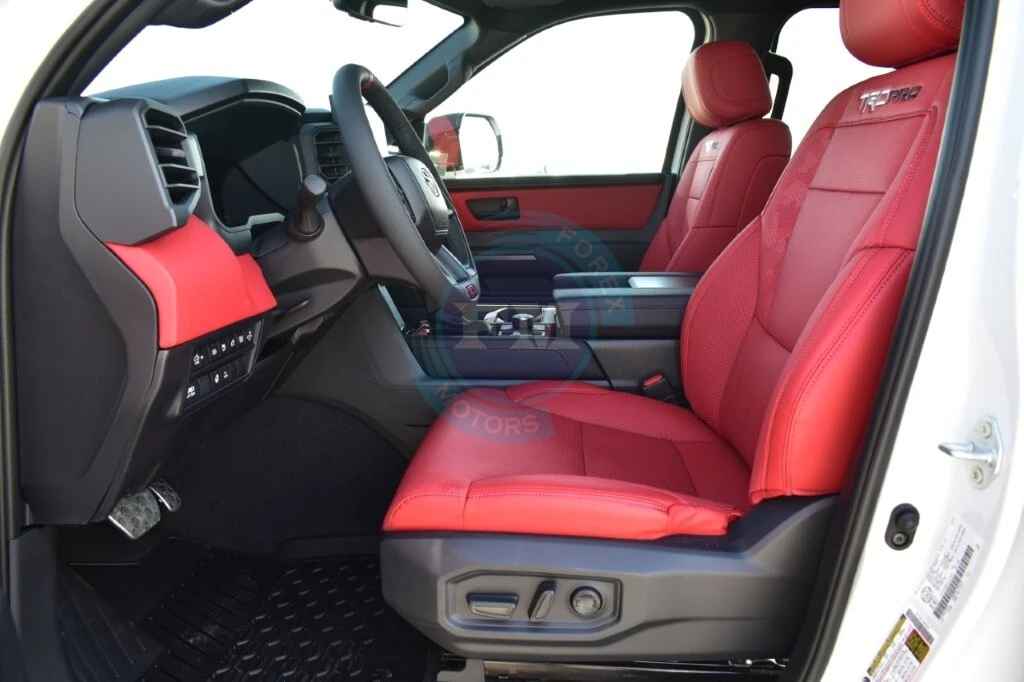 The TRD Pro’s off-road suspension includes a 1.1-inch front lift for enhanced ground clearance on challenging terrain. Furthermore, 2.5-inch FOX internal bypass coil-overs deliver exceptional handling and composure across the roughest surfaces. Additionally, rear remote-reservoir shocks absorb impacts effectively, maintaining ride comfort even during demanding off-road driving.