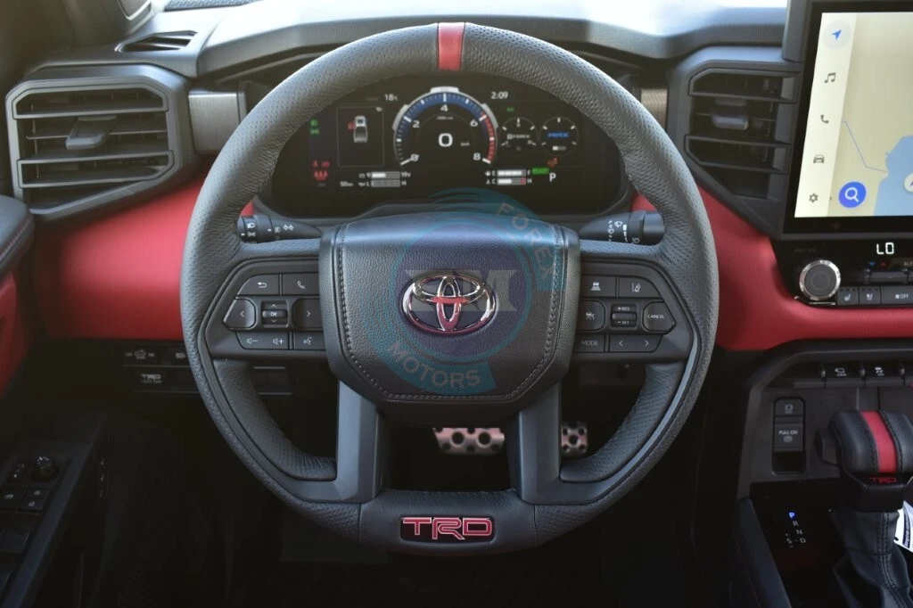 Multi-terrain select allows drivers to optimize traction settings for specific and challenging surface conditions effectively. Furthermore, this intelligent system adjusts power delivery automatically to maintain grip across mud, sand, and rock. Therefore, the Tundra TRD Pro Hybrid tackles every off-road challenge with outstanding confidence and impressive mechanical capability.